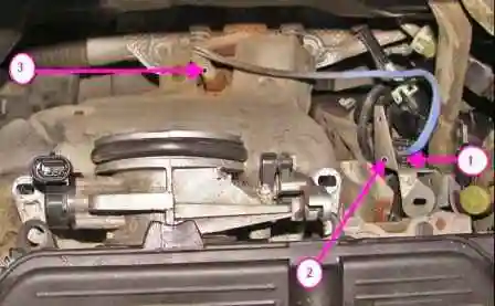 Отсоединяем колодку жгута проводов от колодки 1 (рисунок 1), управляющего датчика кислорода.