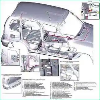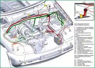 На рисунках ниже представлены схемы расположения жгутов проводов автомобиля ВАЗ-2123.