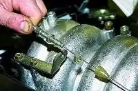 Для прокачки другого контура удаляем воздух из нижних штуцеров блоков цилиндров передних колес в произвольном порядке.