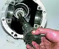 Вынимаем из картера ведущий вал