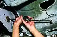 Покачивая, вытягиваем соединители бампера из уплотнителей нижней поперечины передка.