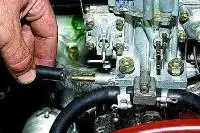 Пассатижами или клещами сжимаем за выступы малый хомут и, поддевая отверткой, разъединяем его.