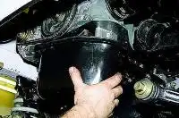 Снимаем пластину защиты поддона картера и правый брызговик двигателя