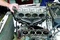 Отворачиваем гайки крепления подушек левой и правой опор силового агрегата к кронштейнам поперечины передней подвески (см. Снятие опор силового агрегата).