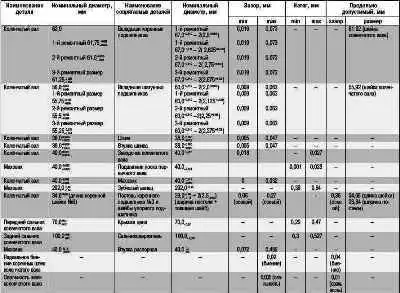 Номинальные и предельно допустимые размеры и посадка сопрягаемых деталей коленчатого вала двигателя ЗМЗ-409.10