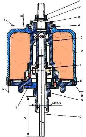 Трубка 10 должна иметь плотную посадку в оси ротора и выступать, обеспечивая размер «А», равный 70±0,5 мм.