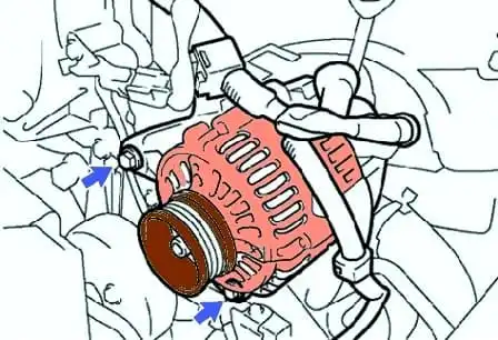 Снятие генератора (модели с двигателем 1 и 2 AZ-FE)
