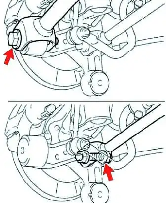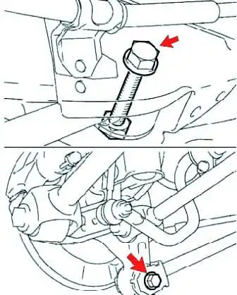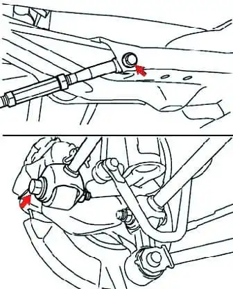 Отворачивая болт, фиксируйте стопорную гайку рычагов задней подвески.