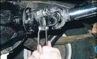 Расшплинтовываем палец рычага привода стояночного тормоза
