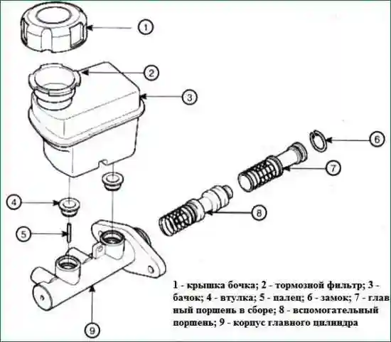 Відмова головного гальмівного циліндра обумовлена зносом поршнів, ущільнювальних кілець, а також робочої поверхні циліндра