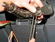 Виведіть моторний джгут із тримачів на двигуні (див. «Заміна прокладки головки блоку циліндрів») і відведіть його убік.