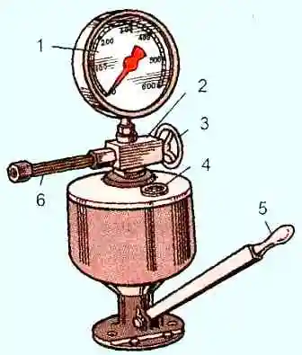 На рис. 2 показаний прилад для контролю розпилювачів форсунок та регулювання тиску впорскування мод. "Моторпал" NS 50.