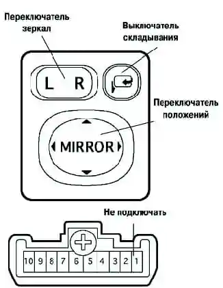 Підключіть акумулятор до виводів «3» (+) та «2» (–) роз'єму електроприводу, переконайтеся, що дзеркало повертається вліво.
