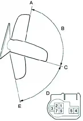 Підключіть акумулятор до виводів роз'єму електродвигуна, перевірте сигнал, змінюючи положення дзеркала згідно з даними в таблиці.