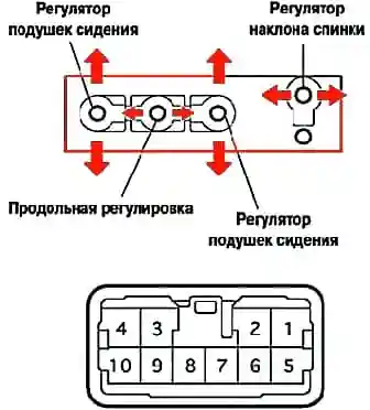 Перевірте наявність провідності між роз'ємом переднього вимикача регулювання сидінь