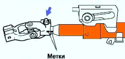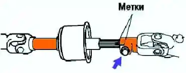 Вирівняйте позначки суміщення проміжного валу та валу управління рульової колонки.