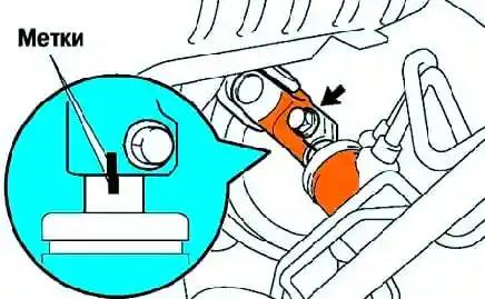 Встановіть проміжний вал у зборі, поєднайте мітки проміжного валу та кронштейна рульової колонки та затягніть стяжний болт кріплення (рис. 7). Момент затягування: 35,3 Нм.