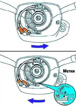 Перед встановленням рульового колеса правильно покладіть спіральний провід центральної подушки безпеки.