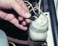 Для снятия стеклоочистителя разъединяем его колодку и, сняв левый край уплотнителя капота, вынимаем жгут проводов из прорези панели