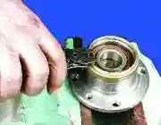 Изнутри салона снимите стопорную скобу с пальца педали тормоза.