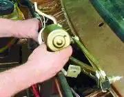 Перед установкой радиатора в моторный отсек наклоните его и подсоедините к радиатору верхние шланги системы охлаждения