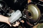 Если уровень тормозной жидкости в бачке находится на отметке "MAX" или приближается к ней, то откачайте из бачка часть жидкости.