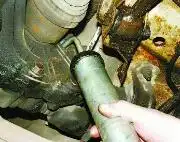 Если уровень тормозной жидкости в бачке находится на отметке "MAX" или приближается к ней, то откачайте из бачка часть жидкости. Иначе она польется через край при установке новых колодок.