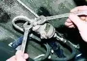 Заворачиваем на место болт крепления шкива привода генератора и головкой "на 19" проворачиваем за болт коленчатый вал на два оборота по часовой стрелке.