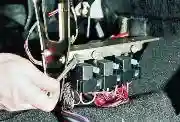 Отжав монтажной лопаткой подвеску вниз, выводим шаровой палец из отверстия рычага