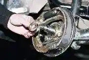 Отсоединяем шланг подвода разрежения к вакуумному усилителю тормозов.