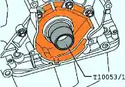 Снимите ступицу путем равномерной затяжки съемника 2, в результате ступица отделится от конуса распределительного вала.