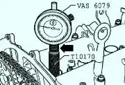 Прикрутите к направляющей съемника сальника центральный болт от руки до упора в коленчатый вал.