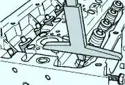 Для этого вставьте стопорные штифты через свободные продольные пазы в отверстие головки блока цилиндров.