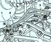 Выкрутите болты 1 и снимите заглушку 2 выпускного распредвала (рис. 2).