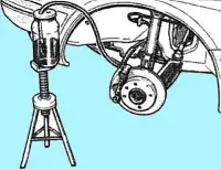 – приподнять один край машины так, чтобы освободить колесо и, предварительно включив 5 передачу, вращать переднее колесо;